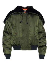 ribbed-cuff jacket Highlights - Green - Faux fur trim - Zip fastening - Press-stud fastening - Drawstring hood - Ribbed cuffs Made in Italy Composition Outer: Nylon 100% Artificial Fur 100% Washing instructions Read Manufacturer Guidelines