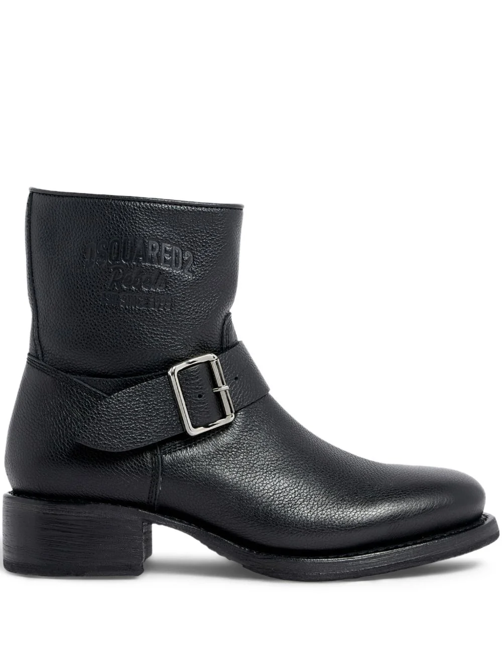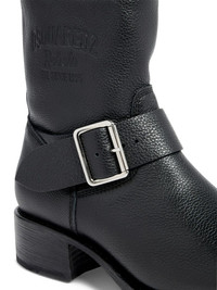 Harley buckle ankle boots Highlights - Black - Embossed detailing - Buckle fastening - Side zip fastening - Stacked heel Made in Italy Composition Outer: Calf Leather 100% Lining: Calf Leather 100% Sole: Calf Leather 100%
