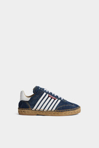 - PRODUCT ID: ESM0018101000013096 - STONEWASHED DENIM ESPADRILLES - LEATHER DETAILS - CONTRASTING STITCHING - LOGO PRINTED ON THE COLLAR - LACES - LINED - WOVEN JUTE SOLE - RUBBER SOLE - MADE IN SPAIN - UPPER: 100% COTTON - LINING: 100% COTTON - SOLE: 70% JUTE, 30% ELASTODIENE This new version of lace-up espadrilles created by Dsquared2 is original. The denim upper, inspired by five-pocket jeans, is soft and comfortable. These are shoes that pair perfectly with summer looks, especially with jeans and chinos.