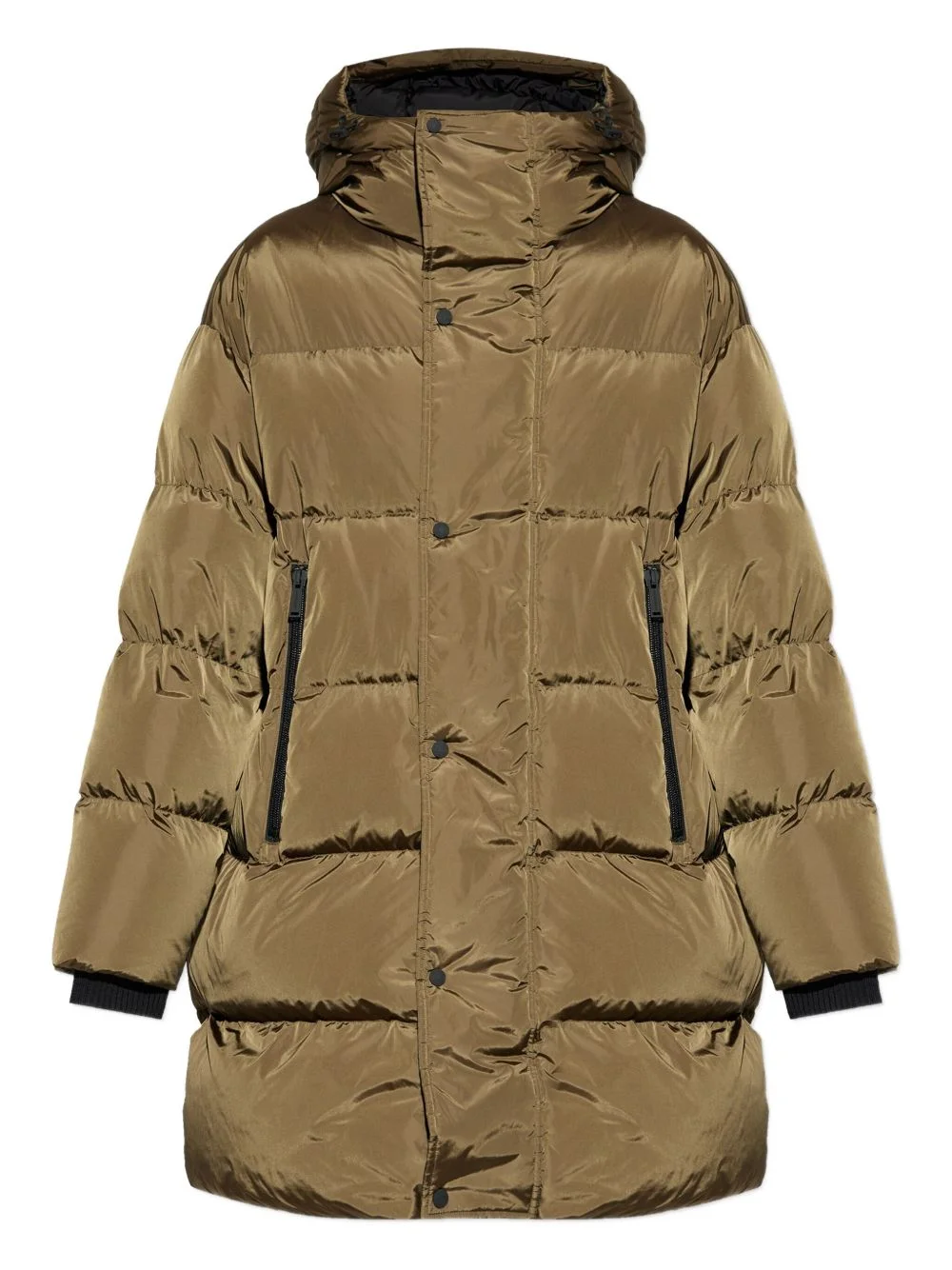 hooded quilted puffer coat Highlights - Brown - Quilted - Hooded neckline - Zip fastening - Snap button placket - Long sleeves Imported Composition Outer: Polyester 100% Lining: Down 90%, Feather 10% Washing instructions Read Manufacturer Guidelines