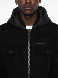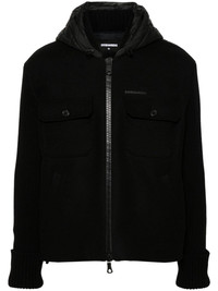 contrast-panel hooded jacket Highlights - Black - Virgin wool blend, cotton - Felted - Drawstring hood - Contrasting-fabric sleeves - Rubberised logo detail - Two chest flap pockets - Two side welt pockets - Side zip detailing - Contrasting panel detail - Front two-way zip fastening Made in Italy Composition Outer: Polyester 100%, Virgin Wool 79%, Polyamide 20%, Elastane 1% Lining: Polyamide 100%, Cotton 100% SIZE & FIT Model measurements Height 6 ft 2 in(1.87 m) Bust/Chest 36.41 in(92.5 cm) Hips 37 in(94 cm) Waist 29.52 in(75 cm) FittingInformation Designed to be unstructured, offering a loose fit throughout The internal drawstring at the hem allows for fitted preferences Made from a midweight fabric This piece fits true to size – take your usual size