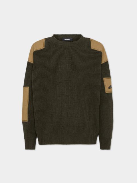 - PRODUCT ID : S79HA0027D13155477 - MADE FROM VIRGIN WOOL - CREW NECK - RIBBED TRIMS - DENIM PATCHES - EMBROIDERED ICON LETTERING