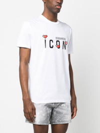 Icon logo-print T-shirt Dsquared2 offers a playful touch to its iconic Icon print with this T-shirt, adorned with a pixelated heart motif for AW23. Highlights - White - Cotton - Logo print to the front - Heart print - Round neck - Short sleeves - Straight hem Made in Italy Composition Cotton 100% SIZE & FIT Model measurements Height 6 ft 0 in(1.84 m) Bust/Chest 36.22 in(92 cm) Hips 35.43 in(90 cm) Waist 26.77 in(68 cm) FittingInformation This piece fits true to size. We recommend you get your regular size Cut for a slim fit Made with a mid-weight fabric Washing instructions Dry Clean Only