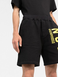 Icon logo track shorts Dsquared2 privileges comfort in these track shorts, crafted from soft cotton. Designed for an easy pull-on, this piece features an elasticated waistband and a relaxed cut. The label’s Icon motif is printed to the side for a branded finish. Made in Italy Composition Outer: Cotton 100% Lining: Cotton 100% SIZE & FIT Model measurements Height 6 ft 3 in(1.9 m) Bust/Chest 38.18 in(97 cm) Hips 37.4 in(95 cm) Waist 27.55 in(70 cm) FittingInformation This piece fits true to size. We recommend you get your regular size Designed for a slim fit at the waist and loose over the leg Made with a mid-weight fabric Washing instructions Machine Wash