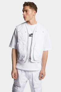 - MADE FROM THICK COTTON CANVAS - TWO-WAY ZIP CLOSURE - COLLARLESS DESIGN - PATCH POCKETS - BUTTONED HEM ADJUSTERS - DSQUARED2 ICON LOGO PRIMARY FABRIC: 100% COTTON Bring utility attitude to your everyday 'fits with this collarless canvas vest. A two-way zip closure ensures effortless versatility, whilst patch pockets keep your essentials close. Finished with a tonal Dsquared2 ICON logo.