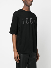 Icon-print cotton T-shirt The Icon motif is a recurring feature throughout Dsquared2's collections. It adds a recognisable finish to this black cotton tee. Highlights - Black - Cotton - Graphic print to the front - Round neck - Short sleeves Made in Italy Composition Cotton 100% SIZE & FIT Model measurements Height 6 ft 1 in(1.85 m) Bust/Chest 31.88 in(81 cm) Hips 33.07 in(84 cm) Waist 26.77 in(68 cm) FittingInformation This piece fits true to size. We recommend you get your regular size Cut for a relaxed fit Made with a mid-weight fabric Washing instructions Dry Clean Only