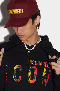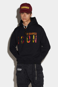 - PRODUCT ID: S79GU0096S25516900 - COTTON SWEATSHIRT - REGULAR FIT - DRAWSTRING HOOD - FRONT SUNSET "DSQUARED2 ICON" PRINT - MADE IN ITALY PRIMARY FABRIC: 100% COTTON. SECONDARY FABRIC: 99% COTTON, 1% ELASTANE-SPANDEX Rock the surfer vibe with this Dsquared2 black pullover hoodie, with its relaxed fit, ribbed cuffs and hem, and "DSQUARED2 ICON" printed in a tropical sunset motif across the front. The on-trend surfer and beach aesthetic give this hoodie a fashionable, laid-back edge. Pair it with dark jeans and sneakers for a cool, casual look.