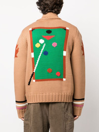 intarsia-knit zip-up cardigan Highlights - Sand brown/multicolour - Wool - Knitted construction - Patterned intarsia knit - Stripe detailing - Shawl collar - Front zip fastening - Long sleeves - Ribbed cuffs and hem Imported Composition Wool 100% SIZE & FIT Model measurements Height 6 ft 2 in(1.88 m) Bust/Chest 37.79 in(96 cm) Hips 35.82 in(91 cm) Waist 29.92 in(76 cm) FittingInformation Designed to be unstructured, offering a loose fit throughout Made with a heavyweight knit, this piece offers some stretch This piece fits true to size – take your usual size Washing instructions Dry Clean Only