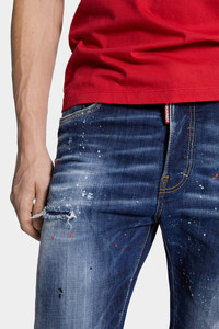 - PRODUCT ID : S74LB1733S30664470 - MADE FROM STRETCH COTTON DENIM - MID BLUE WASH - REGULAR FIT - STRAIGHT LEG - FIVE-POCKET STYLE - DISTRESSED FINISH - WHISKERING EFFECTS - SPLATTERED DETAILING - RED DSQUARED2 LABEL - DSQUARED2 PATCH