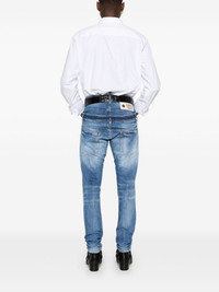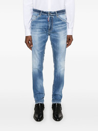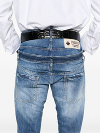 layered jeans Highlights - Indigo blue - Button fly fastening - Classic five pockets - Mini logo tag - Logo patch to the rear Made in Italy Composition Outer: Cotton 100% Lining: Polyester 65%, Cotton 35% SIZE & FIT Model measurements Height 6 ft 2 in(1.88 m) Bust/Chest 36.61 in(93 cm) Hips 35.82 in(91 cm) Waist 27.95 in(71 cm) FittingInformation Designed for a slim fit, these jeans offer a comfortable fit that sits just away from the leg Sturdy and hard-wearing, this denim piece offers no stretch