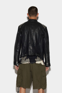 - PRODUCT ID: S74AM1372SY1564900 - LEATHER BIKER JACKET - SLIM FIT - STUD DETAILS ON THE SHOULDERS - TWO-WAY ZIP CLOSURE - SNAP BUTTON MANDARIN COLLAR - ZIP CHEST POCKETS - SIDE POCKETS - ZIP AND SNAP BUTTON CUFFS - MADE IN INDIA PRIMARY FABRIC: 100% LEATHER. LINING: 100% POLYESTER THIS D2 PREMIUM LEATHER BIKER JACKET IS THE ULTIMATE IN STYLISH OUTERWEAR. WITH STANDOUT FEATURES LIKE DIAGONAL FRONT ZIPS AND STUDDED SHOULDER PADS, THIS JACKET IS SURE TO MAKE A STATEMENT. WHETHER DRESSED UP OR DOWN, THIS JACKET IS SURE TO ELEVATE ANY OUTFIT. THE HIGH-QUALITY LEATHER AND FASHIONABLE DESIGN MAKE THIS BIKER JACKET A MUST-HAVE FOR ANY FASHION-CONSCIOUS MAN.