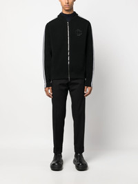 logo-embroidered bird's eye knit cardigan Highlights - Black/white - Cotton - Bird's eye knit - Side stripe detailing - Embroidered logo at the chest - Ribbed band collar - Front two-way zip fastening - Two side slash pockets - Long sleeves - Ribbed cuffs and hem Made in Italy Composition Cotton 100% SIZE & FIT Model measurements Height 6 ft 2 in(1.87 m) Bust/Chest 38.18 in(97 cm) Hips 36.61 in(93 cm) Waist 29.13 in(74 cm) FittingInformation Designed to be unstructured, offering a loose fit throughout The ribbed hem offers a close, comfortable fit Made from a midweight non-stretch fabric, this piece offers minimal elasticity when worn This piece fits true to size – take your usual size Washing instructions Hand Wash