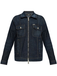 logo-patch denim jacket Highlights - Navy blue - Front zip fastening - Chest flap pockets - Two side slit pockets - Spread collar Made in Italy Composition Cotton 99%, Elastane 1%