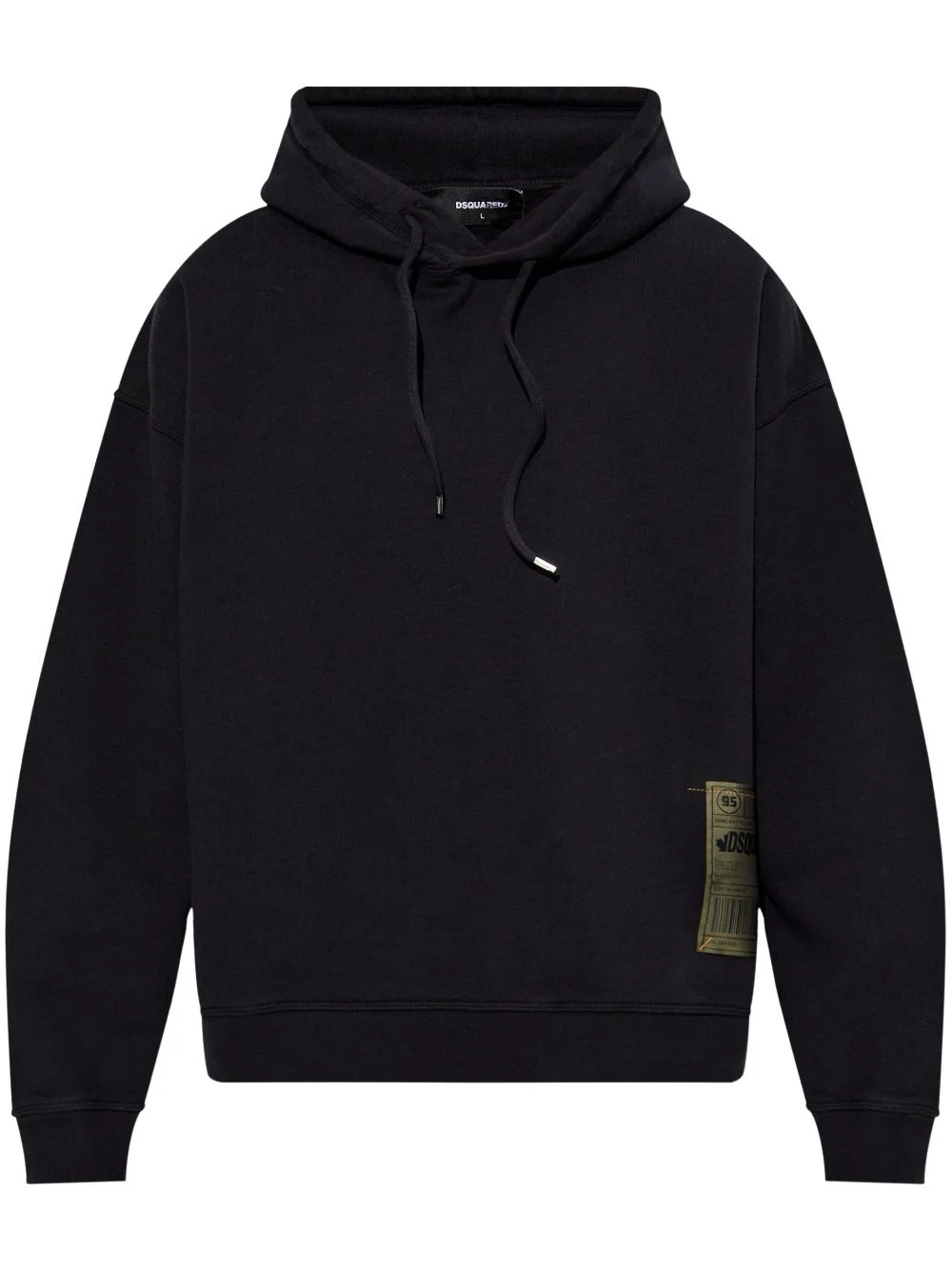 logo-patch hoodie Highlights - Black - Drawstring hood - Drop shoulder - Long sleeves - Ribbed cuffs and hem Made in Italy Composition Cotton 100%