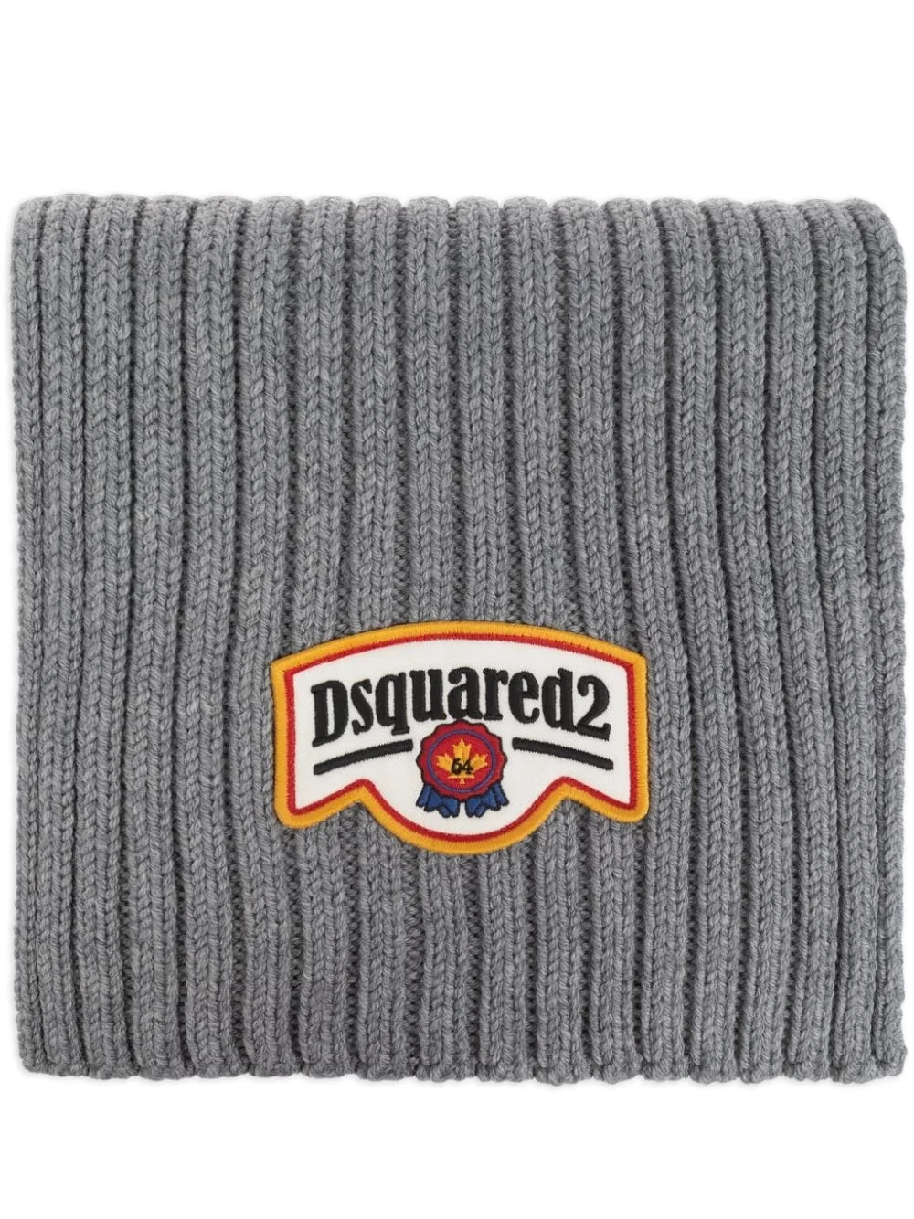 logo patch scarf Highlights - Medium grey - Wool - Knitted construction - Logo patch to the front - Ribbed knit - Wraparound style Made in Italy Composition Wool 100% SIZE & FIT Measurement LENGTH 78.74 in(200 cm) WIDTH 9.44 in(24 cm)