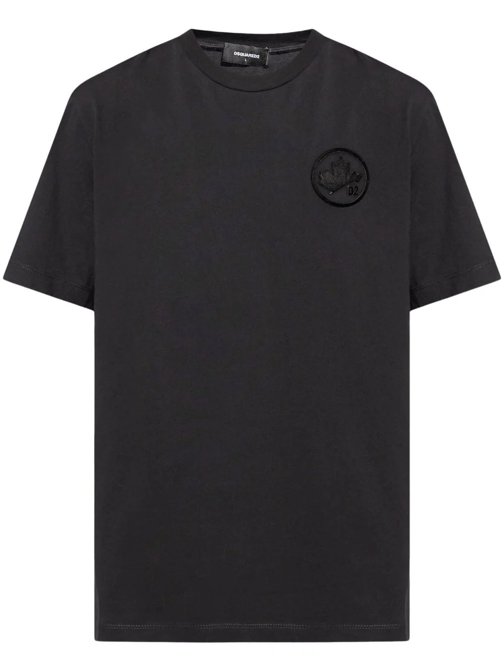 logo-appliqued cotton T-shirt Highlights - Black - Cotton - Jersey texture - Applique logo - Crew neck - Short sleeves - Straight hem Imported Composition Cotton 100% SIZE & FIT FittingInformation Designed for a relaxed fit, this piece allows for comfort and movement when worn Made from a midweight non-stretch fabric, this piece offers minimal elasticity when worn This piece fits true to size – take your usual size