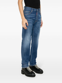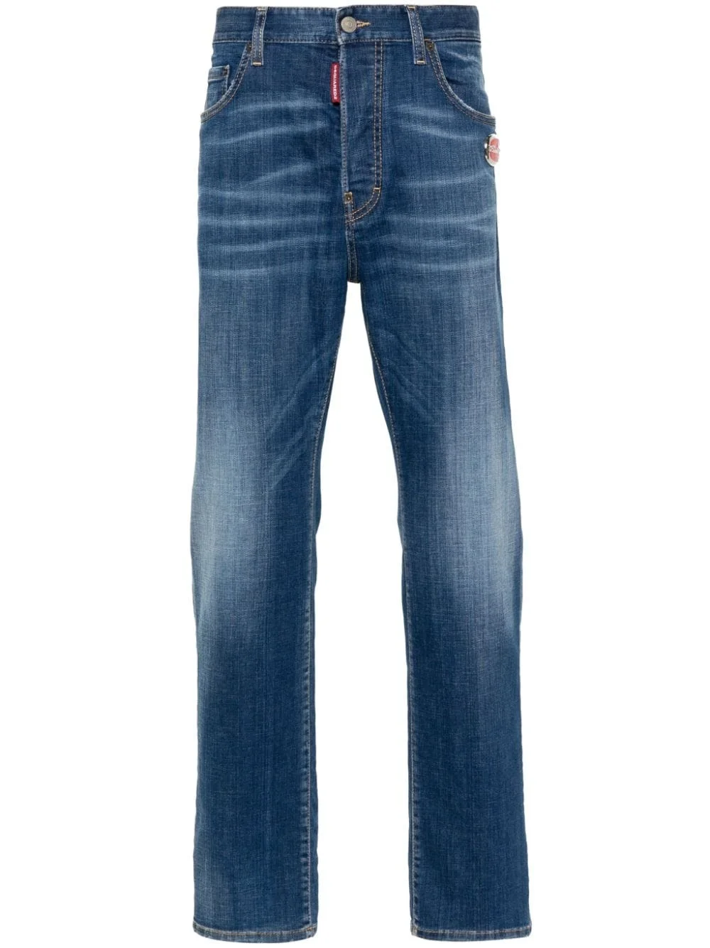 logo-pla slim-cut jeans Cut from stretch denim to a slim-fit silhouette, these blue Dsquared2 jeans boast a faded and whiskered effect to create a lived-in, distressed look. They are finished with a glazed logo plaque to the side, adding a branded note. Highlights - Indigo blue - Stretch-cotton - Denim - Faded effect - Whiskering effect at the thighs - Contrast stitching - Belt loops - Classic five pockets with distressed effect - Silver-tone logo plaque to the front - Logo tag to the fly - Straight leg - Logo-embossed buttons - Concealed front button fastening Imported Composition Lining: Polyester 65%, Cotton 35% Cotton 98%, Elastane 2% SIZE & FIT Model measurements Height 6 ft 2 in(1.87 m) Bust/Chest 33.46 in(85 cm) Hips 36.22 in(92 cm) Waist 29.52 in(75 cm) FittingInformation Designed for a slim fit, these jeans offer a comfortable fit that sits just away from the leg Constructed from stretch denim, this piece offers a stretch fit with durability This piece fits true to size – take your usual size Washing instructions Machine Wash