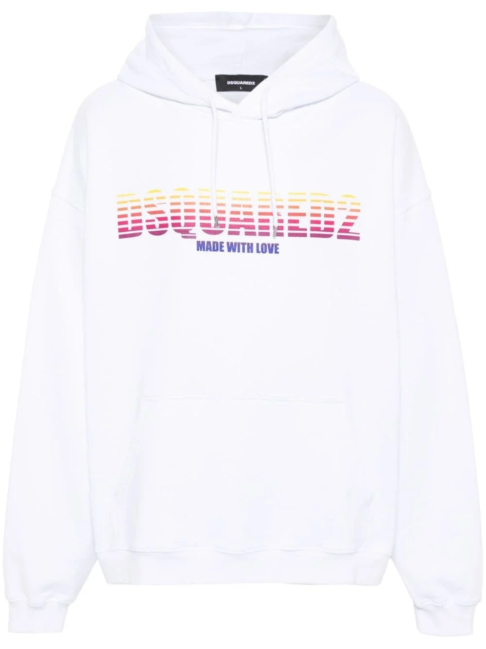 logo-print cotton hoodie Highlights - White - Cotton - Jersey texture - Logo and slogan print to the front - Drawstring hood - Drop shoulder - Long sleeves with ribbed cuffs - Front pouch pocket - French terry lining - Ribbed hem Made in Italy Composition Cotton 100% SIZE & FIT Model measurements Height 6 ft 2 in(1.87 m) Bust/Chest 38.18 in(97 cm) Hips 36.61 in(93 cm) Waist 29.13 in(74 cm) FittingInformation Designed to be unstructured, offering a loose fit throughout The ribbed hem offers a close, comfortable fit Made from a midweight non-stretch fabric, this piece offers minimal elasticity when worn This piece fits true to size – take your usual size