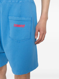 logo-print cotton shorts Cut from cotton, these relaxed shorts by Dsqaured2 are imagined in an eye-catching cerulean blue hue. They feature subtle distressed detailing and are punctuated with a red logo print to the rear. Highlights - Cerulean blue - Cotton - Distressed effect - Elasticated waistband - Two side slit pockets - Two rear patch pockets - Logo print to the rear - Above-knee length - Straight hem Made in Italy Composition Cotton 100% SIZE & FIT Model measurements Height 6 ft 2 in(1.87 m) Bust/Chest 34.25 in(87 cm) Hips 36.22 in(92 cm) Waist 29.52 in(75 cm) FittingInformation Designed with a wide leg, offering a loose and roomy fit The elasticated waist allows for a comfortable fit Made from a midweight non-stretch fabric, this piece offers minimal elasticity when worn This piece fits true to size – take your usual size