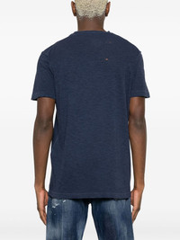 logo-print cotton T-shirt Dsquared2's T-shirt is minimally adorned with a curved logo print at the chest, keeping with the brand's enduring logomania trend. This crew-neck style is made with cotton jersey to a navy blue hue. Highlights - Navy blue - Cotton blend - Distressed finish - Jersey texture - Ribbed crew neck - Short sleeves - Logo print at the chest - Straight hem Made in Italy Composition Cotton 88%, Viscose 12% SIZE & FIT Model measurements Height 6 ft 0 in(1.84 m) Bust/Chest 34.64 in(88 cm) Hips 35.03 in(89 cm) Waist 27.95 in(71 cm) FittingInformation Designed for a regular fit allowing for a comfortably loose fit throughout the body Made from a midweight non-stretch fabric, this piece offers minimal elasticity when worn This piece fits true to size – take your usual size