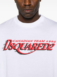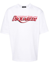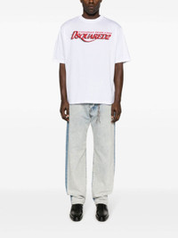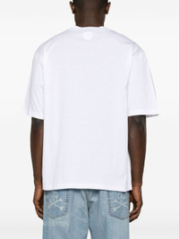 white/red cotton soft jersey logo print to the front crew neck short sleeves straight hem Size & Fit Model Measurements: Bust: 90cm Height: 184cm Hips: 96cm Waist: 72cm