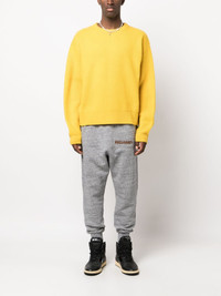 logo-print cotton track pants Highlights - Medium grey - Cotton - Melange effect - Logo print to the front - Elasticated waistband - Two side slit pockets - Elasticated ankles Made in Italy Composition Cotton 100% SIZE & FIT Model measurements Height 6 ft 0 in(1.84 m) Bust/Chest 36.22 in(92 cm) Hips 35.43 in(90 cm) Waist 26.77 in(68 cm) FittingInformation Designed for a relaxed tapered leg, allowing a comfortable loose fit above the knee with a closer fit towards the calves The ribbed hem at the ankle offers a close, comfortable fit Made from a midweight non-stretch fabric, this piece offers minimal elasticity when worn This piece fits true to size – take your usual size Washing instructions Machine Wash
