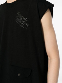 logo-print fine-knit vest Highlights - Black - Virgin wool - Fine knit - Ribbed-knit edge - Logo print at the chest - Crew neck - Sleeveless - Side flap pocket - Straight hem Made in Italy Composition Virgin Wool 100% SIZE & FIT Model measurements Height 6 ft 2 in(1.87 m) Bust/Chest 34.25 in(87 cm) Hips 36.22 in(92 cm) Waist 29.52 in(75 cm) FittingInformation Designed to be unstructured, offering a loose fit throughout Made with a lightweight knit, this piece offers some stretch This piece fits true to size – take your usual size