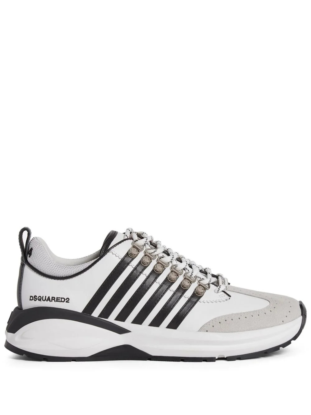 logo-print low-top sneakers Highlights - White/black - Calf leather - Colour-block panelled design - Side stripe detailing - Logo patch at the tongue - Logo print to the side - Pull-tab at the heel - Front lace-up fastening - Logo-engraved shoelace tag - Round toe - Branded insole - Rubber sole - Logo at the sole Imported Composition Outer: Calf Leather 85%, Polyurethane 10%, Polyester 5% Lining: Calf Leather 95%, Polyurethane 5% Sole: Polyethylene vinyl acetate (PEVA) 65%, Elastodiene 25%, Polyurethane 10%