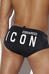 - PRODUCT ID: D7B453940ISA01010 - STRETCH NYLON SWIM BRIEFS - SLIM FIT - "DSQUARED2 ICON" PRINT ON THE BACK - ELASTICATED DRAWSTRING WAIST - REAR LOOP - MADE IN ITALY 80% POLYAMIDE/NYLON, 20% ELASTANE The model is 6'2" tall and wears a size M Be the star attraction at the beach in these be icon swim briefs. Made from stretch nylon, this swimwear is not only stylish but lightweight and super comfortable. Featuring Dsquared2's statement branding in bold print on the back with an inner drawstring at the waist and rear loop, this iconic swimwear is sure to turn heads.