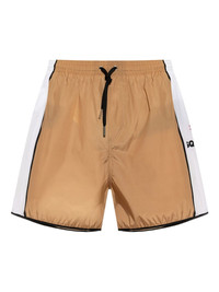 logo swim shorts Highlights - Light brown - Elasticated drawstring waistband - Two side slit pockets - Two rear patch pockets - Panelled design - Be mindful to try on swimwear over your own garments. Made in Italy Composition Polyamide 92%, Elastane 8%