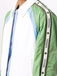 logo-tape bomber jacket white/green/blue cotton contrasting-fabric sleeves logo-tape detailing classic collar front zip fastening two side inset pockets straight hem Made in Italy Composition Outer: Polyester 100%, Cotton 100%, Polyamide 100% Lining: Cotton 100% SIZE & FIT Model measurements Height 6 ft 2 in(1.87 m) Bust/Chest 38.18 in(97 cm) Hips 36.61 in(93 cm) Waist 29.13 in(74 cm) FittingInformation This piece fits true to size. We recommend you get your regular size Cut for a loose fit Made with a mid-weight non-stretch fabric Washing instructions Dry Clean Only