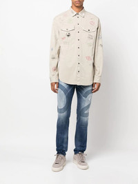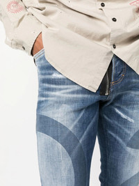 logo-wash distressed skinny jeans logo-wash distressed skinny jeans from DSQUARED2 featuring blue, cotton blend, distressed finish, logo patch to the rear, front zip fastening, slim cut and logo wash detail. Made in Italy Composition Outer: Lambskin 100%, Cotton 98%, Elastane 2% Lining: Polyester 65%, Cotton 35% SIZE & FIT Model measurements Height 6 ft 2 in(1.87 m) Bust/Chest 38.18 in(97 cm) Hips 36.61 in(93 cm) Waist 29.13 in(74 cm) Washing instructions Machine Wash