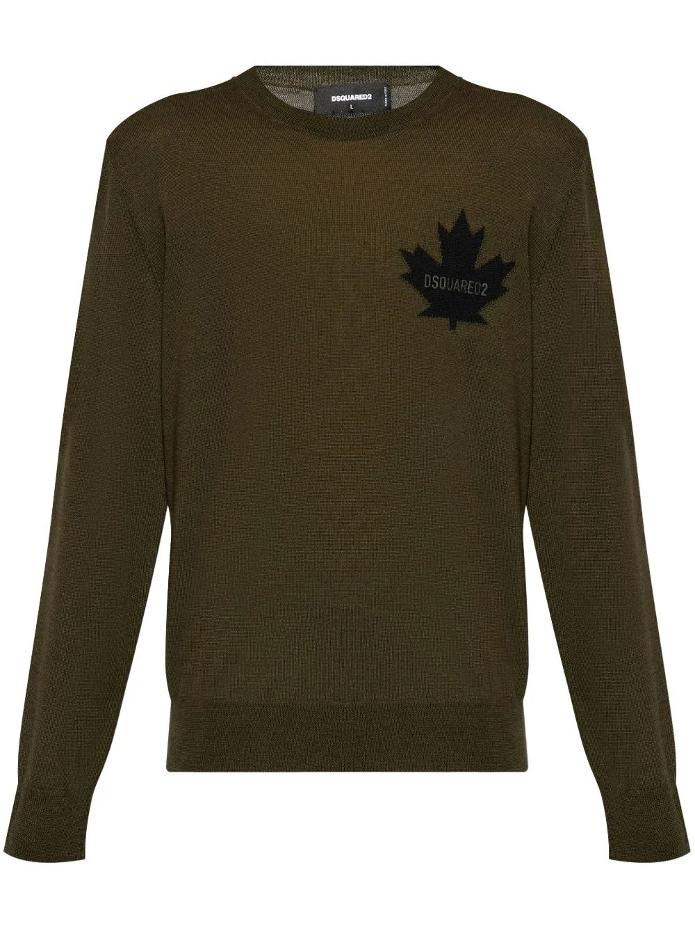 Maple Leaf-intarsia jumper Highlights - Green - Wool - Knitted construction - Intarsia-knit logo - Crew neck - Long sleeves - Ribbed trim - Straight hem Made in Italy Composition Wool 100%