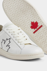 - MADE FROM TUMBLED LEATHER - CONTRAST MAPLE LEAF DETAIL - LACE-UP CLOSURE - RUBBER CUPSOLE - EMBROIDERED DSQUARED2 LOGO ON THE TONGUE - CONTRAST LOGO HEEL TAB UPPER: 100% CALFSKIN; LINING: 45% COTTON, 5% POLYESTER, 50% CALFSKIN; SOLE: 100% RUBBER The iconic Boxer sneaker is refreshed with our signature maple leaf detail: an elegant homage to Dsquared2's Canadian roots. Just add denim shorts or chinos and stride into summer with effortless style.