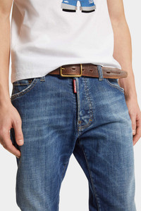 - PRODUCT ID: S74LB1571S30872470 - STRETCH DENIM 5 POCKET PANTS - WASH: USED WITH WEAR-AND-TEAR - SINGLE BUTTON WAISTBAND - LOGOED LABEL SEWN ON THE FLY - LEATHER LABEL SEWN ON THE BACK - CONTRASTING TWO-NEEDLE STITCHING - FIT: SLIM - MADE IN ITALY FABRIC 93% COTTON, 4% POLYESTER, 3% ELASTANE APPLICATION: 100% CALF LEATHER The Slim fit of this Cool Guy jean is the perfect passe-partout for creating so many outfits. The version with placed wear-and-tear is recommended for looks where unique details are welcome, just unleash your creativity.