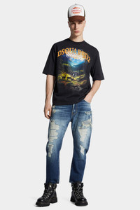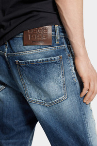 - PRODUCT ID : S74LB1752D30011470 - MADE FROM COTTON DENIM - MID BLUE WASH - LOOSE FIT - FIVE-POCKET STYLE - DISTRESSED FINISH - WHISKERING EFFECTS - RED DSQUARED2 LABEL - DSQUARED2 PATCH PRIMARY FABRIC: 100% COTTON; POCKET LINING: 65% POLYESTER, 35% COTTON; APPLICATION: 100% CALF LEATHER