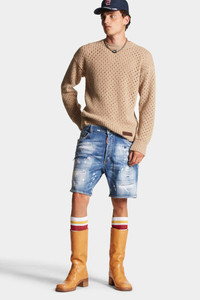 ● PRODUCT ID: S74MU0825S30872470 ● FIVE-POCKET BERMUDA SHORTS IN STRETCH DENIM ● FINISH: USED WITH ALL-OVER WORN, STAINED AND TORN FINISH ● BUTTONED PATCH ON THE BACK ● BUTTON WAISTBAND ● LOGO LABEL SEWN ON THE FLAP ● EMBROIDERED LABEL SEWN ON THE BACK ● TWIN-NEEDLE STITCHING ● SLIM FIT ● MADE IN ITALY ● FABRIC: 93% COTTON, 4% POLYESTER, 3% ELASTANE/SPANDEX These five-pocket denim Bermuda shorts rightfully fit in with casual style. There are many outfits that can be created, because these shorts lend themselves to a thousand interpretations. We recommend combining them with an oversized sweater with a used look or a fitted tank top with metal necklaces. Don't forget a pair of high combat boots with visible socks.