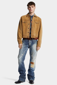- PRODUCT ID : S74LB1750D30011470 - MADE FROM COTTON DENIM - MID BLUE WASH - LOOSE FIT - FIVE-POCKET STYLE - DISTRESSED FINISH - WHISKERING EFFECTS - DIRTY TREATMENT - LEATHER PATCHES - RED DSQUARED2 LABEL - DSQUARED2 PATCH