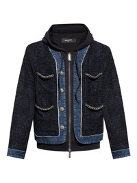 chain-trimmed tweed jacket Highlights - Dark blue - Tweed texture - Denim inserts - Zip fastening Made in Italy Composition Polyester 42%, Viscose 22%, Cotton 21%, Polyamide 15% Washing instructions Read Manufacturer Guidelines