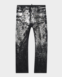 - Dsquared2 "London Bro" jeans with allover metallic coating - Studded design on front legs - Regular rise - Logo label on fly - Five-pocket style - Straight legs - Cotton/elastane/spandex - Made in Italy