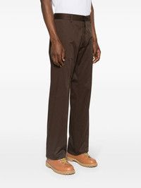 mid-rise twill chino trousers Highlights - Chocolate brown - Cotton blend - Twill weave - Logo print to the rear - Mid-rise - Concealed front button, hook and zip fastening - Belt loops - Two side inset pockets - Two rear button-fastening jetted pockets - Tapered leg Made in Italy Composition Outer: Cotton 97%, Spandex/Elastane 3% Lining: Cotton 100% SIZE & FIT Model measurements Height 6 ft 2 in(1.89 m) Bust/Chest 39.76 in(101 cm) Hips 37.4 in(95 cm) Waist 29.92 in(76 cm) FittingInformation Designed for a straight-leg, allowing for an unrestricted and comfortable fit over the leg Made from a midweight non-stretch fabric This piece fits true to size – take your usual size