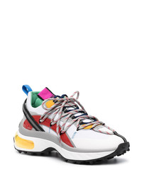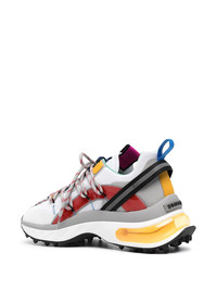multi-panel lace-up sneakers You're on the right foot when it comes to streetwear style. Now you're treading your own path with this multicolour, multi-panel design sneakers from Dsquared2. Set the pace. Imported Composition Outer: Rubber 100%, Fabric 100% Lining: Fabric 100%, Rubber 100% Sole: Rubber 100% SIZE & FIT FittingInformation This piece fits large – take one size down Measurement HEEL 2.16 in(5.5 cm) Sole height 0.98 in(2.5 cm)