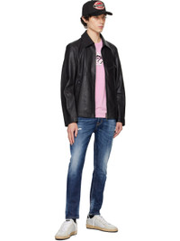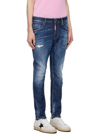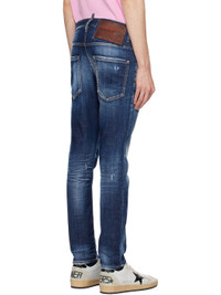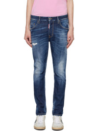Slim-fit stretch denim jeans. Fading, whiskering, and distressing throughout. · Belt-loops · Five-pocket styling · Logo flag at button-fly · Leather logo patch at back waistband Supplier color: Navy Blue 98% cotton, 2% elastane. Made in Romania 242148M186012