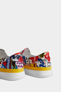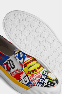 ● PRODUCT ID: SNM034425407280M037 ● COTTON CANVAS SLIP-ON SNEAKERS ● LOGO PRINT ON THE COUNTER ● FABRIC WITH ALL-OVER LOGO PATTERN ● ELASTIC SEWN TO THE SIDES OF THE TONGUE ● EMBOSSED LETTERING ON THE MIDSOLE ● RUBBER SOLE WITH NON-SLIP TREAD ● LINED ● MADE IN ITALY ● UPPER: 100% COTTON ● LINING: 60% COTTON, 40% LAMBSKIN The minimal design of these New Jersey slip-ons is livened up with the colours of the labels printed for the Logomania line. The thick rubber sole and padded insole guarantee comfort and stability. Ideal sneakers for moments dedicated to free time.