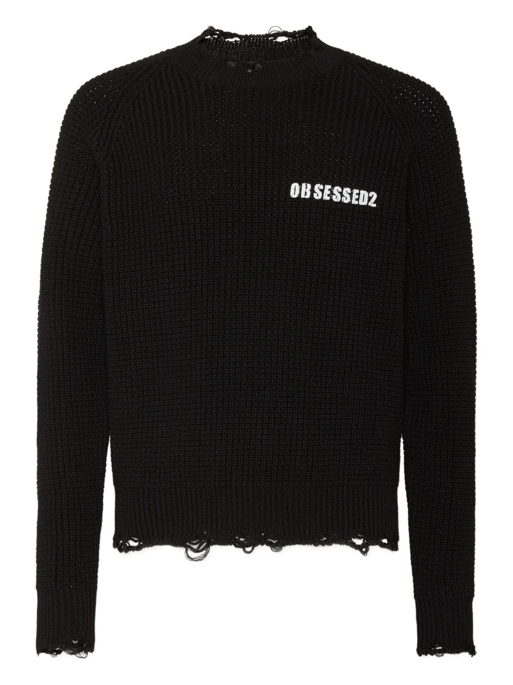 Obsessed2 sweater Highlights - Black - Crew neckline - Logo detail - Frayed edges - Long sleeves - Ribbed texture Made in Italy Composition Fabric 100% Washing instructions Read Manufacturer Guidelines