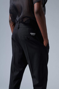 - PRODUCT ID: S74KB0706S40320900 - STRETCH WOOL TROUSERS WITH DARTS - PRESSED PLEATS - TAPERED FIT - SIDE POCKETS - REAR BUTTONED WELT POCKETS - REAR LOOP - REAR MINI "DSQUARED2 CERESIO 9, MILANO" PRINT - CONCEALED ZIP FLY AND HOOK CLOSURE - MADE IN ITALY 95% VIRGIN WOOL, 5% ELASTANE-SPANDEX. POCKET LINING 100% POLYESTER The model is 6'2" tall and wears a size 32 Love an elegant basic? Then these One-Pleat Aviator Pants are a must-have for your wardrobe. These classic smart trousers feature a subtle “DSQUARED2 CERESIO 9, MILANO” logo print above the back pocket for a dash of class. Pair with stompy combat boots for a more casual look or dress them up with a button-down shirt.