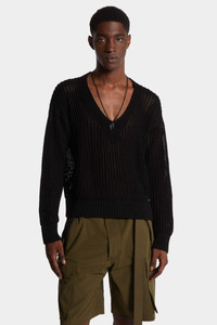 - MADE FROM COTTON - V-NECK - OPEN-KNIT DESIGN - RIBBED TRIMS PRIMARY FABRIC: 100% COTTON Tap into Dsquared2's playful sensuality in this V-neck jumper. Revealing glimpses of skin with its open-knit design, this style takes you seamlessly from day to night: wear over a tank or layer under a denim jacket.