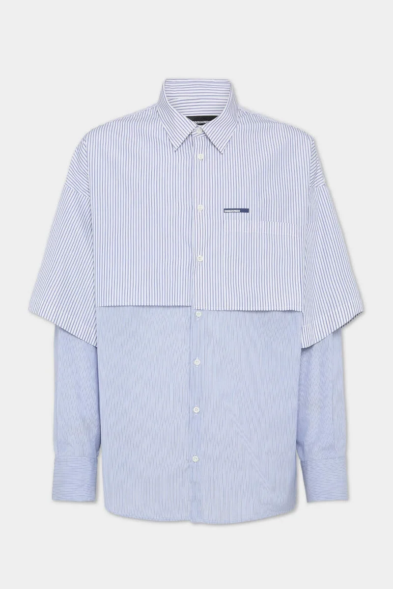 - PRODUCT ID : S74DM0947S52595001F - MADE FROM COTTON - OVERSIZED FIT - CONTRASTING STRIPES - SHORT-SLEEVE TOP LAYER - LONG-SLEEVE BOTTOM LAYER - BUTTON CLOSURE - CHEST POCKET - DSQUARED2 LABEL PRIMARY FABRIC: 100% COTTON; SECONDARY FABRIC: 100% COTTON Why choose one when you can wear both? This oversized shirt combines two garments, both styled with classic stripes but in contrasting widths. A raw-cut hem accentuates the layered look.