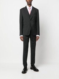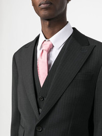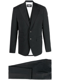 pinstripe-pattern three-piece suit Italian tailoring influences are evident in this DSquared2 suit, which is presented in a timeless grey hue with a white pinstripe pattern. The slim-fitting three-piece benefits from a single-breasted blazer and vest. Highlights - Anthracite grey - Pinstripe pattern - Blazer: - Peak lapels - Front button fastening - Long sleeves - Chest welt pocket - Two front flap pockets - English rear vents - Vest: - V-neck - Front button fastening - Sleeveless - Two chest welt pockets - Trousers: - Belt loops - Pressed crease - Slim cut - Two side inset pockets - Two rear button-fastening jetted pockets Made in Italy Composition Outer: Polyester 54%, Wool 44%, Spandex/Elastane 2% Lining: Polyester 100%, Cotton 100%, Viscose 100% SIZE & FIT Model measurements Height 6 ft 1 in(1.85 m) Bust/Chest 31.88 in(81 cm) Hips 33.07 in(84 cm) Waist 26.77 in(68 cm) FittingInformation Tailored for a slim fit, this waistcoat sits just away from the body The vented hem offers movement at the rear Made from a midweight fabric This piece fits true to size – take your usual size Washing instructions Dry Clean Only