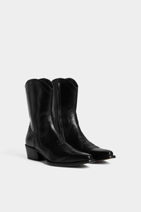 - PRODUCT ID : BOM0023015000012124 - MADE FROM LEATHER - TONAL STITCHING - INNER SIDE ZIP - BLOCK HEEL UPPER: 100% CALF LEATHER; LINING: 80% CALF LEATHER, 20% POLYESTER; SOLE: 100% REAL LEATHER Wild West style for off-duty 'fits. These leather cowboy boots flaunt a sleek silhouette with quintessential stitching on the toe. Complete with a comfy block heel and handy inner side zip.